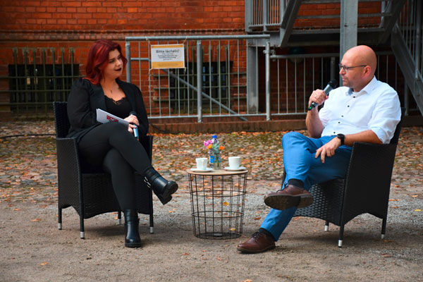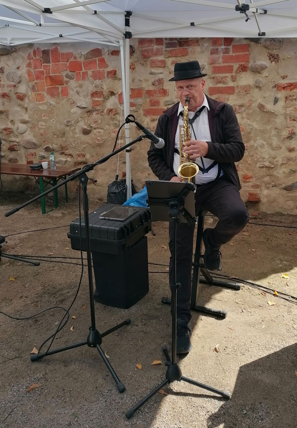 Ganz in der Nähe präsentierte sich unser Sachbereich Denkmalschutz, und zwar im Innenhof des Knaggenhauses. Und das aus gutem Anlass: Das älteste Perleberger Fachwerkhaus ist 500 Jahre alt geworden und war deswegen Anziehungspunkt am Tag des offenen Denkmals. Erstaunlich viele Interessenten fanden die Angebote einer Denkmalbörse auf dem Hof des Knaggenhauses. Die offizielle Eröffnung des Tags des offenen Denkmals moderierte Gordon Thalmann, Sachbereichsleiter Denkmalschutz, mit seinem Team und Gästen aufb der Bühne vor dem Perleberger Rathaus.